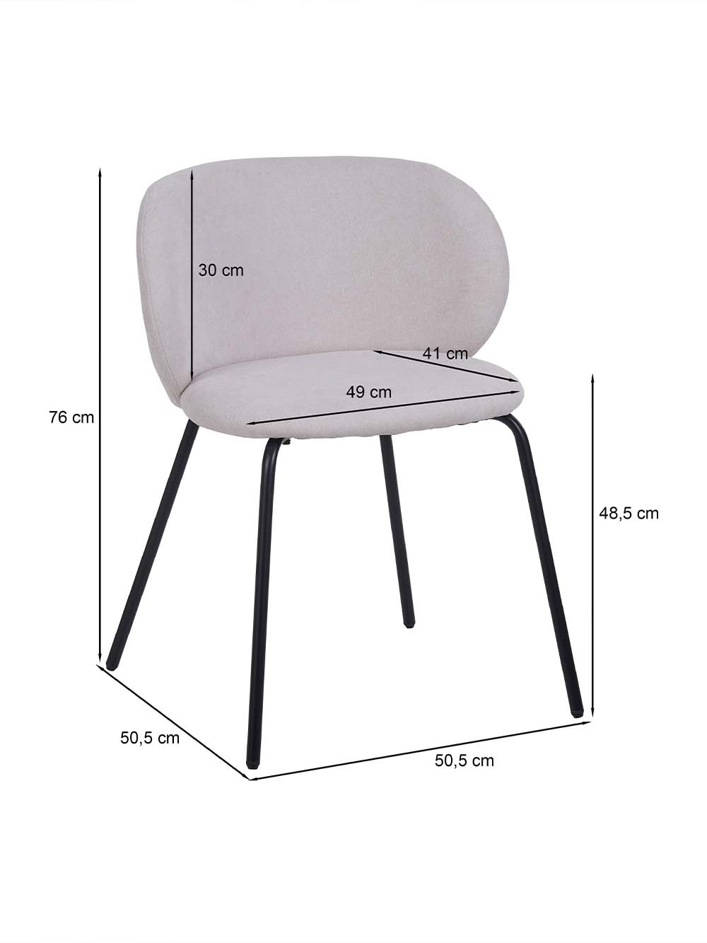 Valgomojo kėdė Nevo pasižymi švelnių formų, moderniu dizainu, kuris interjerui suteikia lengvumo ir jaukumo. Kreminės spalvos sėdynė harmoningai dera su juodos spalvos metaliniu kojų rėmu, sukurdama elegantišką ir šiuolaikišką kontrastą. Apvalių linijų atlošas ir minkšta sėdimoji dalis užtikrina patogų sėdėjimą kasdienio naudojimo metu.
