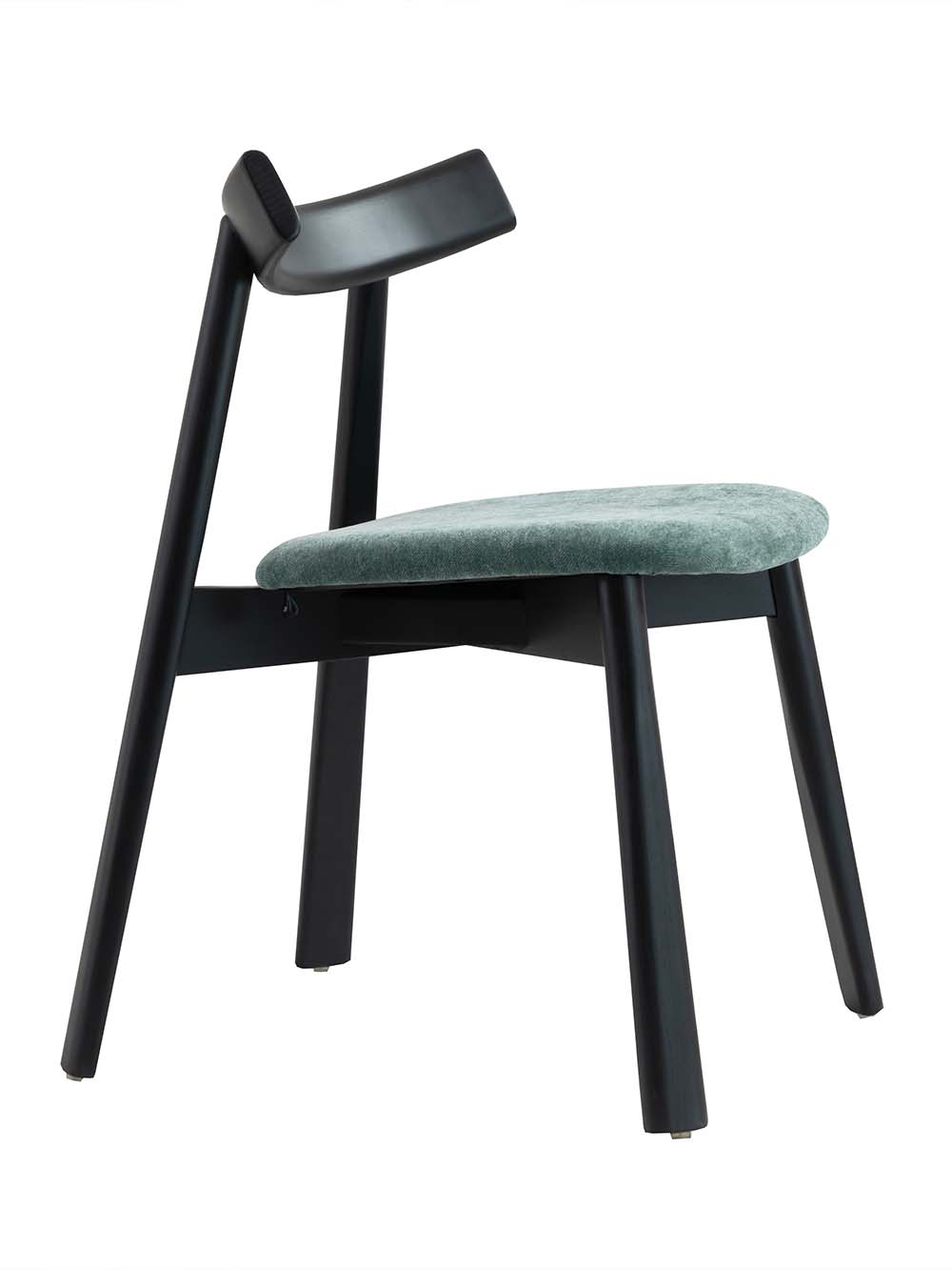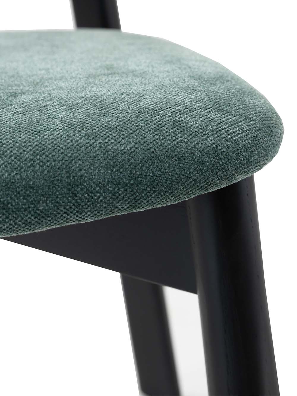 Valgomojo kėdė Silan išsiskiria harmoningomis proporcijomis ir subtiliu, laikui nepavaldžiu dizainu, kuris puikiai dera moderniuose ir skandinaviškuose interjeruose. Tamsiai žalios spalvos sėdynė suteikia jaukumo ir elegancijos, o juodas, beicuoto ir lakuoto uosio masyvo kojų rėmas pabrėžia baldo tvirtumą bei kokybę. Švelniai išlenktas atlošas ir apgalvota konstrukcija užtikrina komfortą kasdieniam naudojimui.