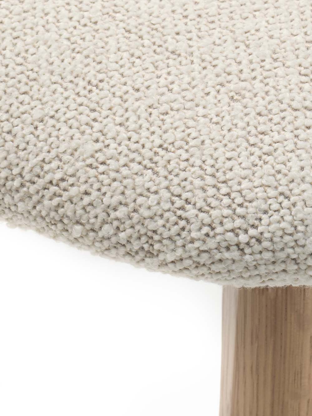 Apie audinį: Crush – tai trumpų kilpelių bouclé tipo audinys, kuris sujungia šiuolaikišką stilių, švelnumą ir išskirtinę tekstūrą. Dėl savo smulkių, tankių kilpelių paviršiaus audinys atrodo itin jaukus ir suteikia baldams vizualinio gylio bei charakterio. Malonus liesti, tvirtos struktūros ir patvarus audinys puikiai tinka tiek sofoms, tiek valgomojo kėdėms, suteikdamas joms šilumos ir elegancijos.