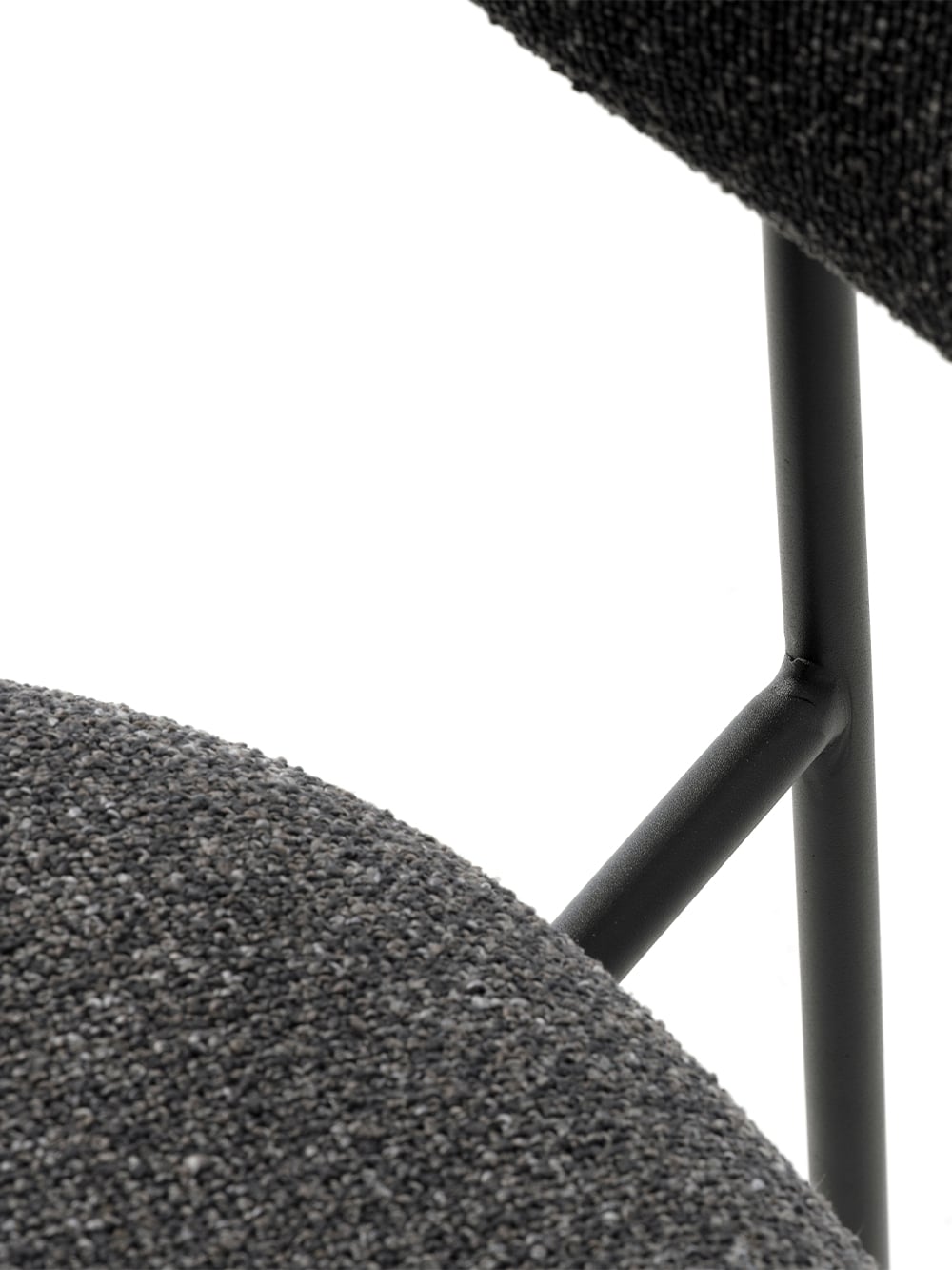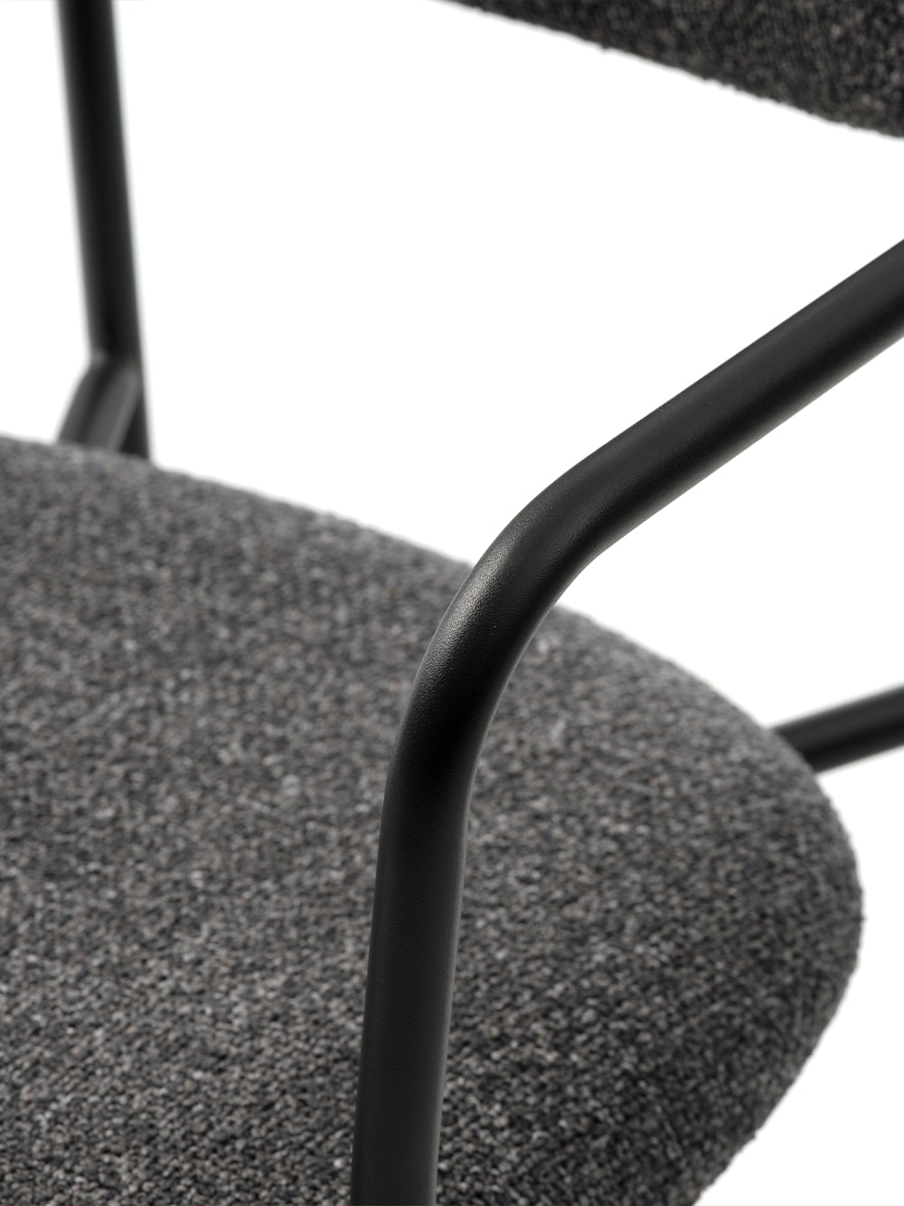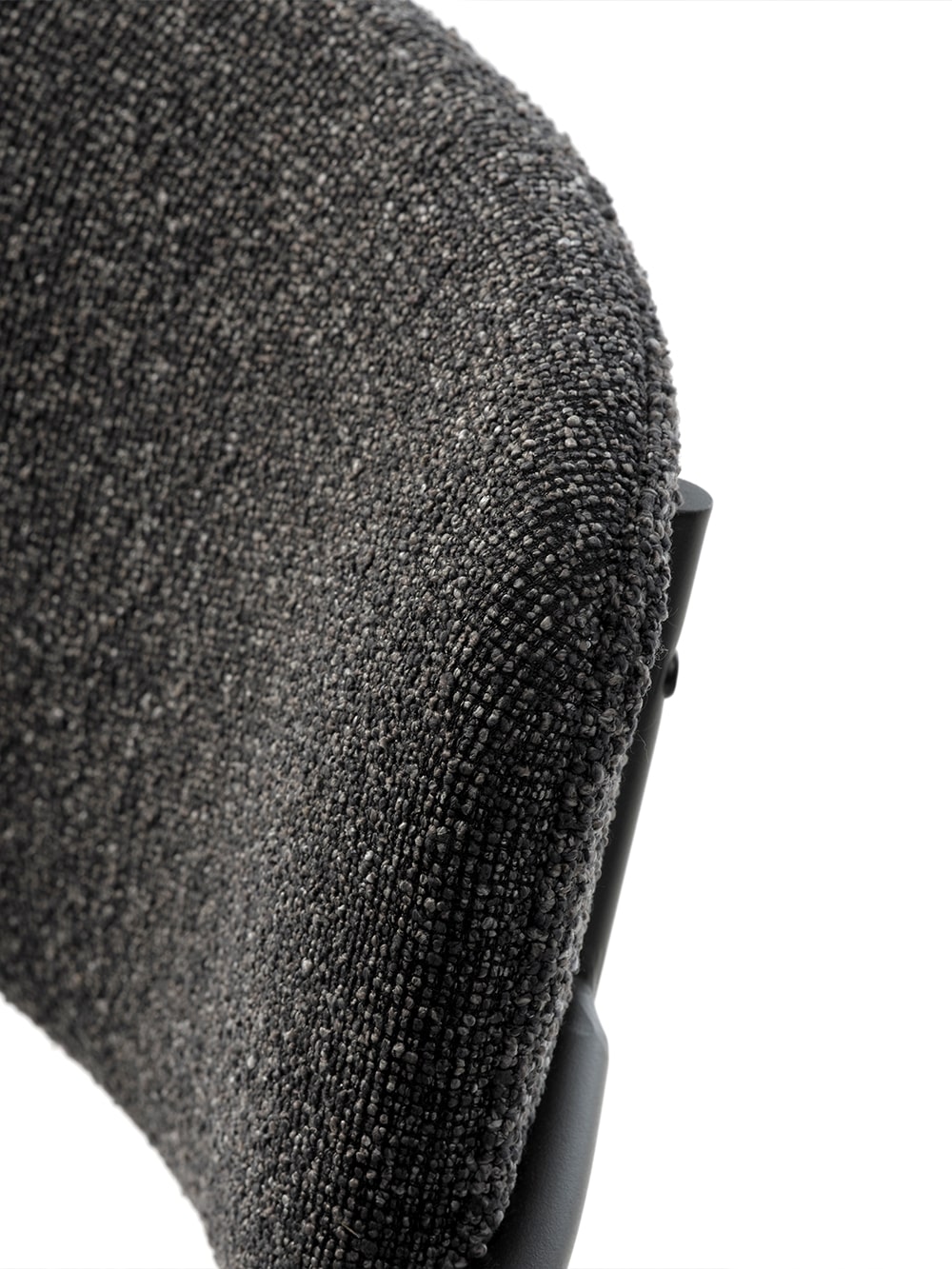 Apie audinį: HEVRE – tai inovatyvus audinys, pagamintas iš dviejų skirtingų verpalų rūšių. Ploni siūlai sukuria tankų, tvirtą pagrindą, o storesni, pūkuoti siūlai suteikia audiniui išskirtinę bouclé faktūrą su subtiliomis kilputėmis. Dėl tokios struktūros audinys yra itin malonus liesti, tvirtas ir atsparesnis užsikabinimams nei įprasti bouclé audiniai. Derinant kelių spalvų pluoštus, sukuriamas subtilus, gylio ir prabangos pojūtį suteikiantis efektas.