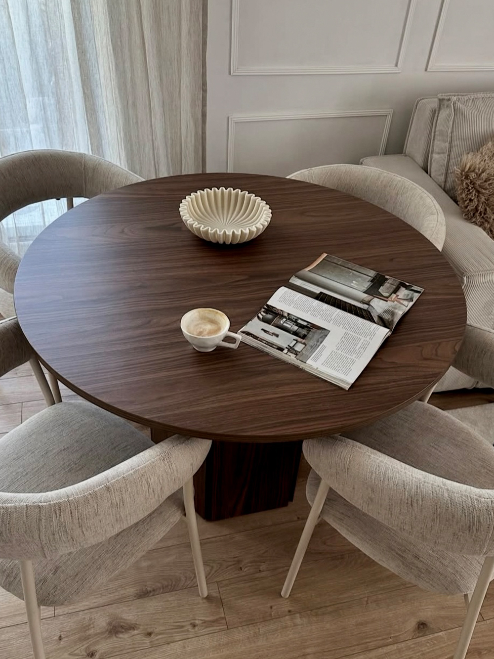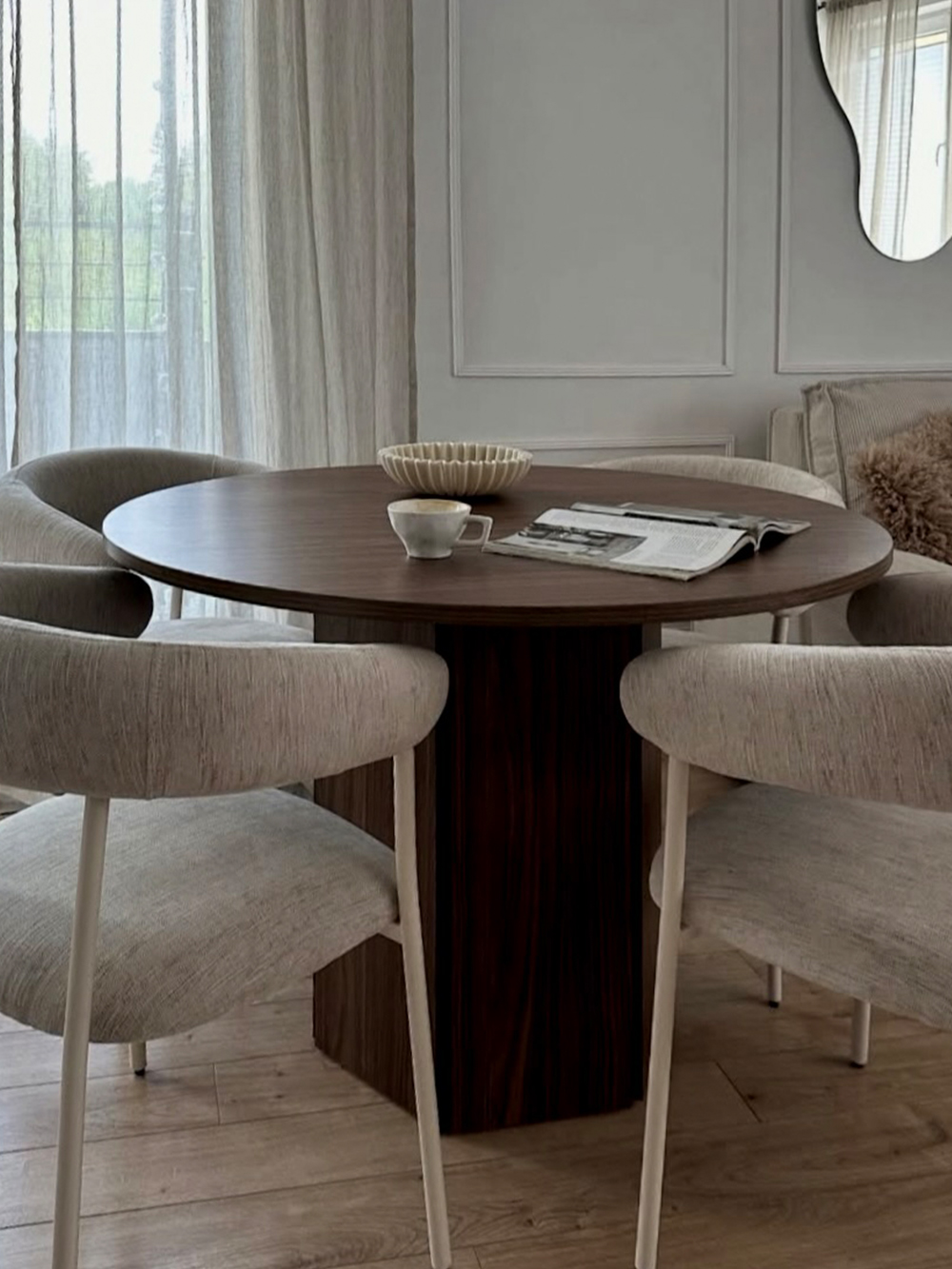 Valgomojo stalas Heka, apvalus/riešutas