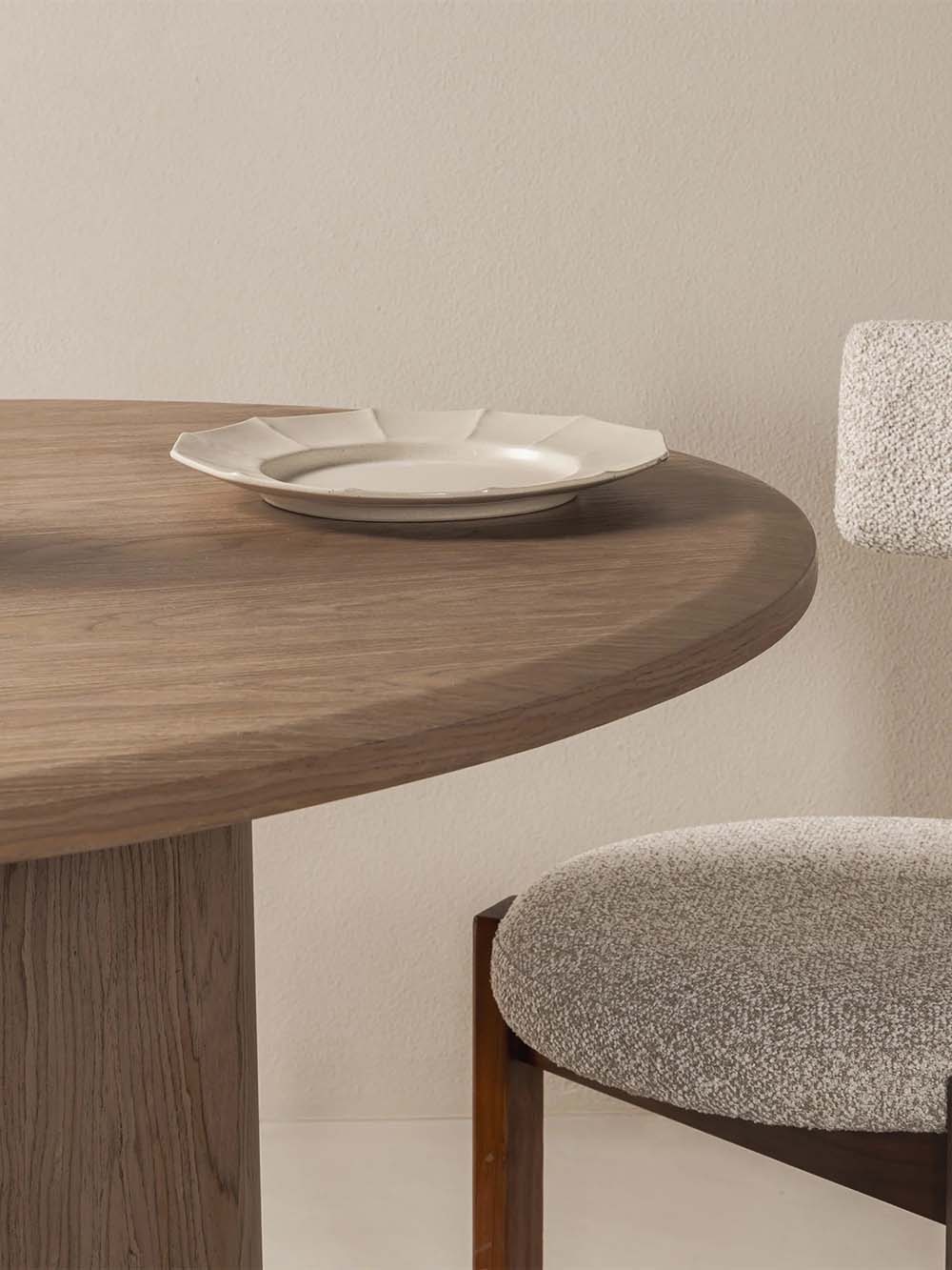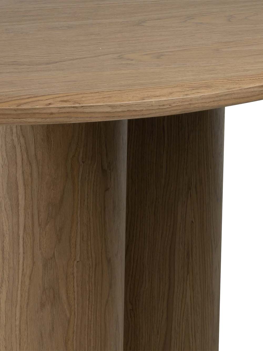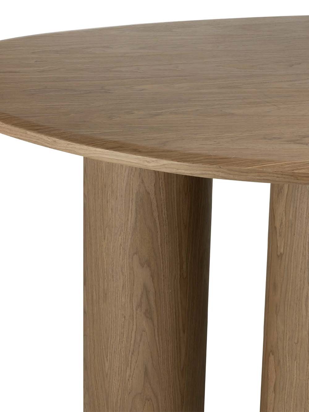 Valgomojo stalas Keren – modernaus dizaino baldas, išsiskiriantis organiška stalviršio forma ir subtilia estetika. Natūrali medienos tekstūra suteikia stalui šilumos ir jaukumo, o trys masyvios, cilindro formos kojos užtikrina stabilumą bei kuria išskirtinį vizualinį akcentą. Patogaus dydžio stalviršis leidžia patogiai susėsti visai šeimai, o tvirta konstrukcija garantuoja komfortišką kasdienį naudojimą. Stalas siūlomas kelių spalvų variantais, todėl lengvai priderinamas prie įvairių interjerų.