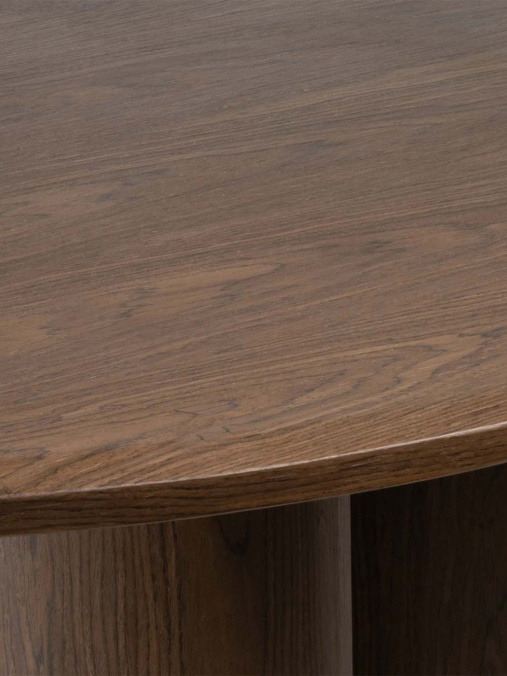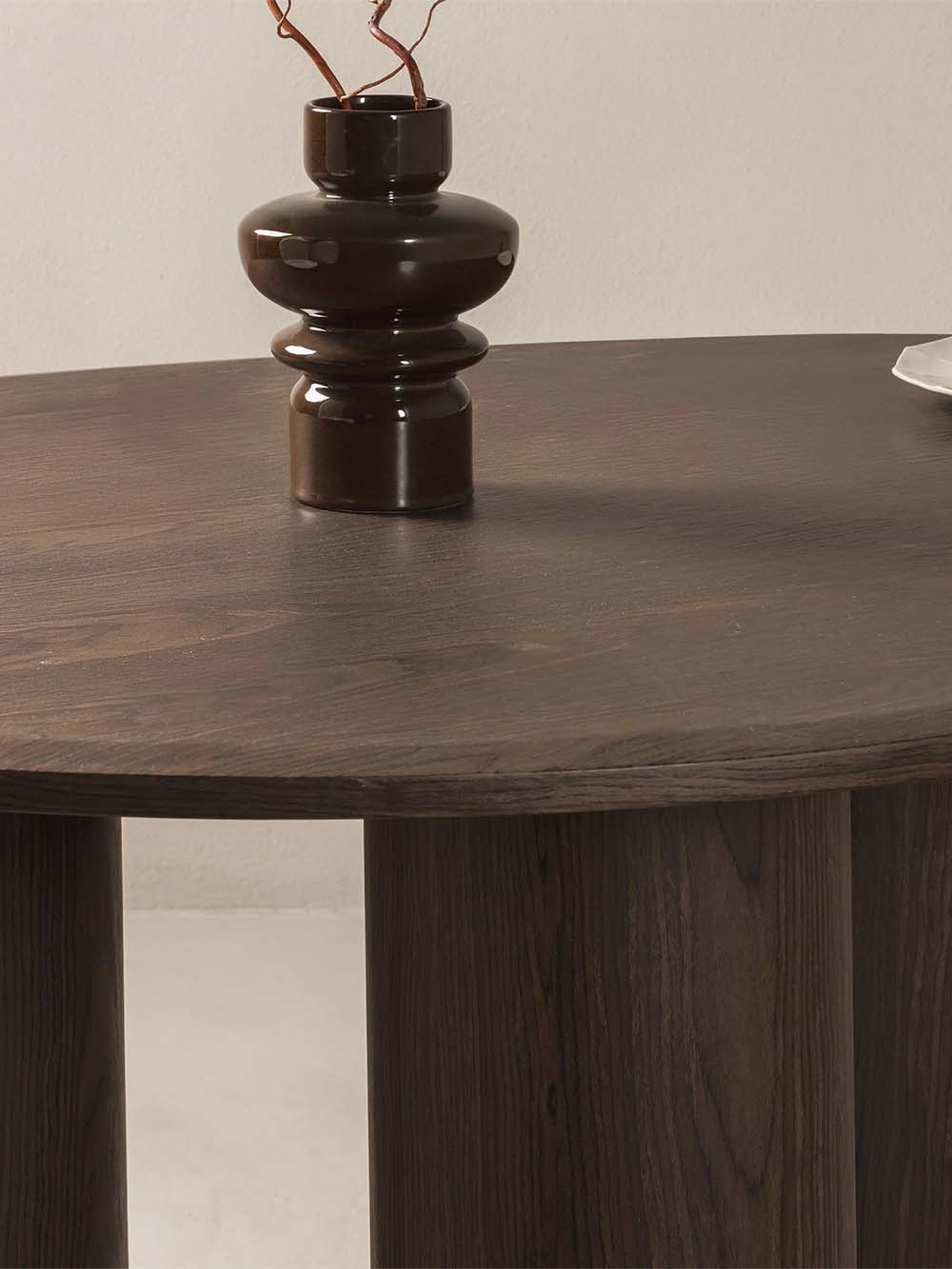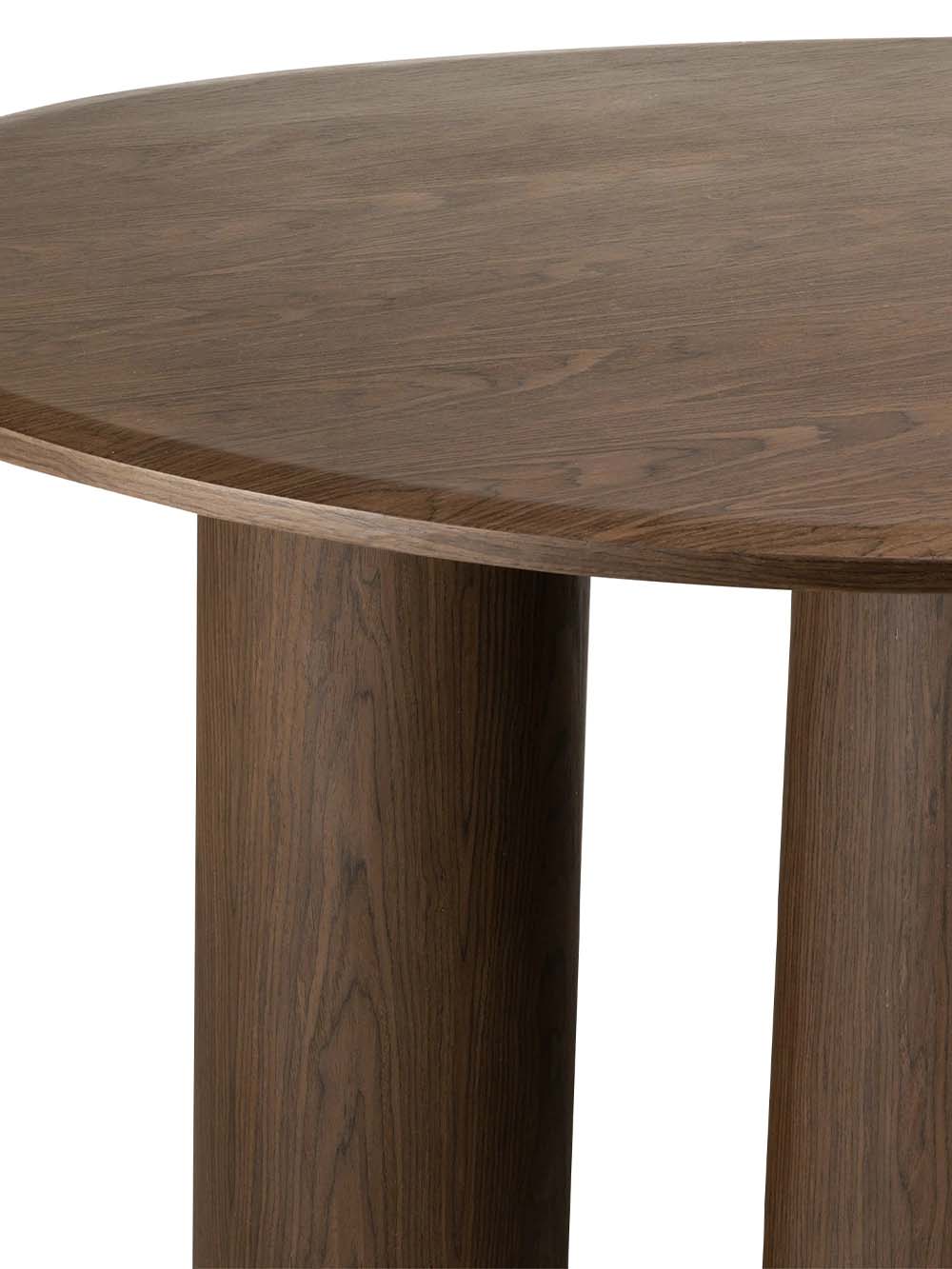Valgomojo stalas Keren – modernaus dizaino baldas, išsiskiriantis organiška stalviršio forma ir subtilia estetika. Natūrali medienos tekstūra suteikia stalui šilumos ir jaukumo, o trys masyvios, cilindro formos kojos užtikrina stabilumą bei kuria išskirtinį vizualinį akcentą. Patogaus dydžio stalviršis leidžia patogiai susėsti visai šeimai, o tvirta konstrukcija garantuoja komfortišką kasdienį naudojimą. Stalas siūlomas kelių spalvų variantais, todėl lengvai priderinamas prie įvairių interjerų.