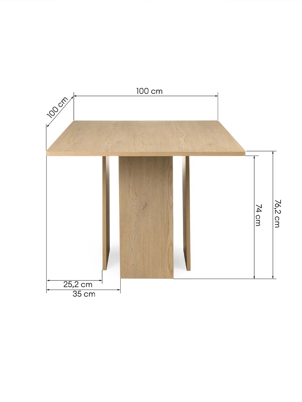 Išoriniai baldo matmenys: ilgis / plotis / aukštis, cm: 100 / 100 / 76,2.