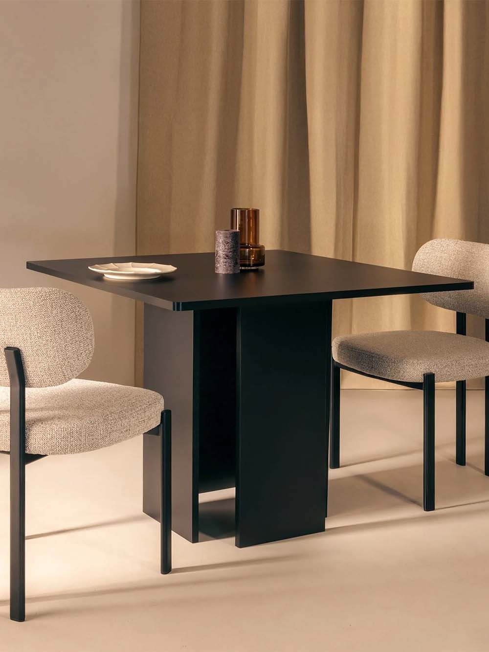 Valgomojo stalas Masy – minimalistinio dizaino baldas, išsiskiriantis švariomis linijomis ir tvirta geometrine forma. Išskirtinis pagrindas iš vertikalių plokščių suteikia stabilumo ir kuria modernų vizualinį akcentą. Pagamintas iš kokybiškos LMDP plokštės, stalas siūlomas kelių spalvų variantų, todėl lengvai priderinamas prie įvairaus interjero.