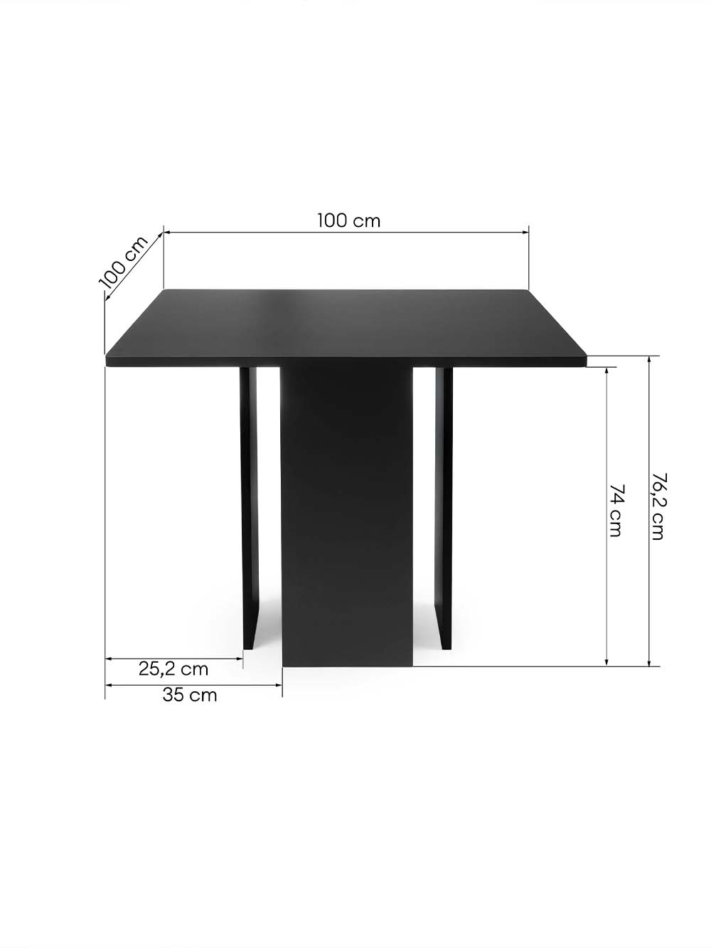 Išoriniai baldo matmenys: ilgis / plotis / aukštis, cm: 100 / 100 / 76,2.