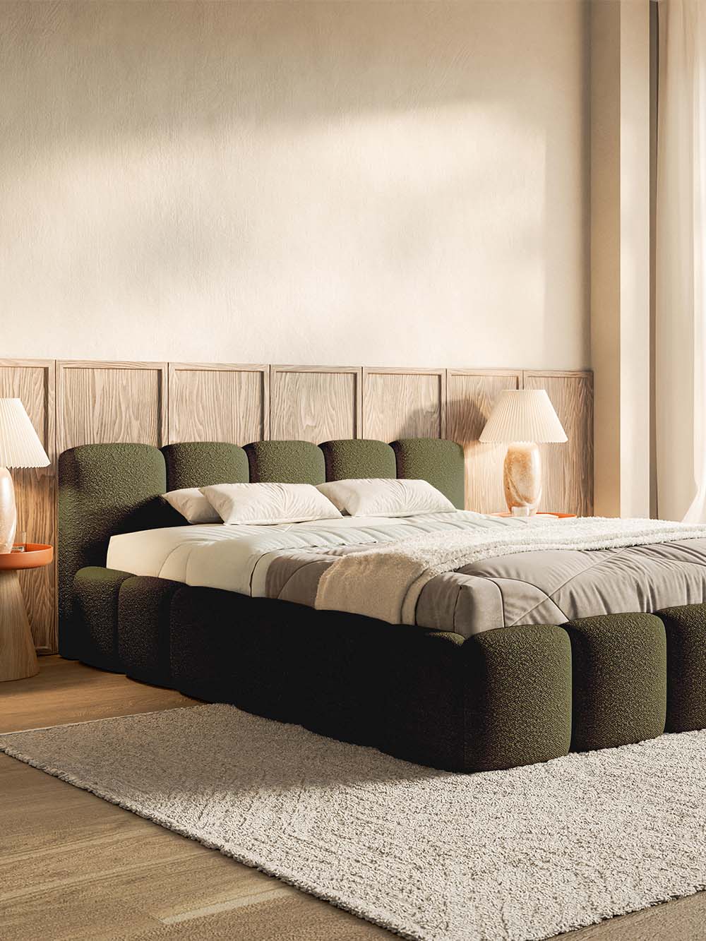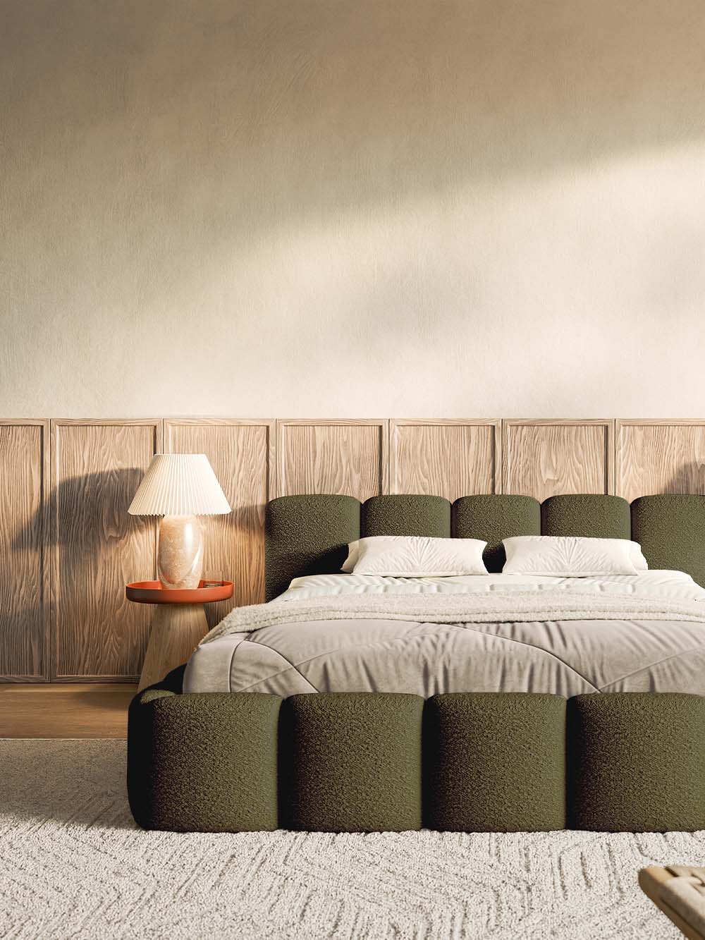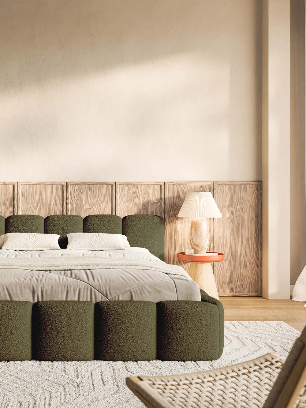 Viengulė lova Capri-L 120 cm, alyvuogių žalia, boucle