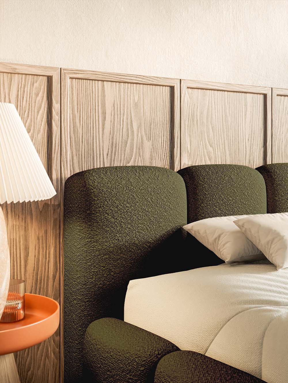 Viengulė lova Capri-L – šiuolaikiško dizaino baldas, išsiskiriantis minkštomis, iškilių pagalvėlių formos sienelėmis, kurios suteikia interjerui jaukumo ir komforto. Tai Capri lovos modelis su žemesniu galvūgaliu, išlaikantis tą patį dizaino vientisumą ir funkcionalumą. Minkštas galvūgalis patogus tiek poilsiui, tiek skaitymui. Lova komplektuojama su metaliniu grotelių rėmu, talpia patalynės dėže ir dujinio pakėlimo mechanizmu, kuris leidžia lengvai ir saugiai pasiekti daiktų laikymo vietą. Galimybė pasirinkti audinį ir jo spalvą leidžia lovą priderinti prie įvairių interjero stilių.
