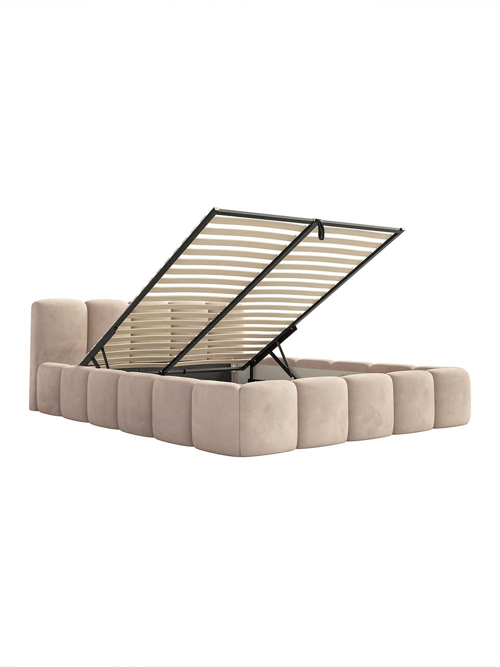 Patalynės dėžė: Yra. Atidaroma iš priekio. Pakėlimo mechanizmo tipas - dujinis.