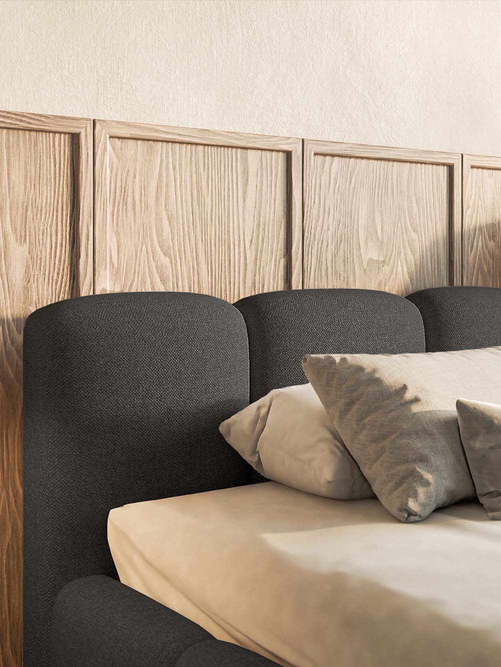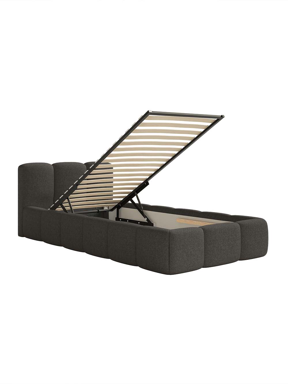 Viengulė lova Capri-L – šiuolaikiško dizaino baldas, išsiskiriantis minkštomis, iškilių pagalvėlių formos sienelėmis, kurios suteikia interjerui jaukumo ir komforto. Tai Capri lovos modelis su žemesniu galvūgaliu, išlaikantis tą patį dizaino vientisumą ir funkcionalumą. Minkštas galvūgalis patogus tiek poilsiui, tiek skaitymui. Lova komplektuojama su metaliniu grotelių rėmu, talpia patalynės dėže ir dujinio pakėlimo mechanizmu, kuris leidžia lengvai ir saugiai pasiekti daiktų laikymo vietą. Galimybė pasirinkti audinį ir jo spalvą leidžia lovą priderinti prie įvairių interjero stilių.