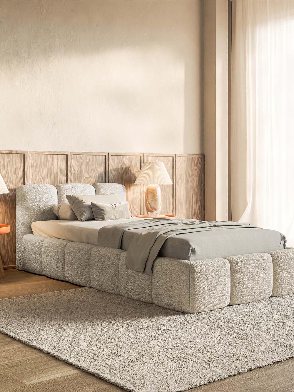 Apie audinį: Legend – tai buklė tipo audinys su išraiškinga kilpine tekstūra, kuri suteikia baldams jaukumo ir išskirtinumo. Tankus pynimas garantuoja tvirtumą ir atsparumą kasdieniam naudojimui, todėl audinys puikiai tinka dažnai naudojamiems baldams. Jis atsparus trinčiai, mažai burbuliuojasi ir ilgiau išlaiko tvarkingą išvaizdą.