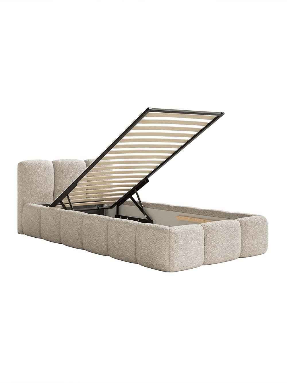 Patalynės dėžė: Yra. Atidaroma iš priekio. Pakėlimo mechanizmo tipas - dujinis.