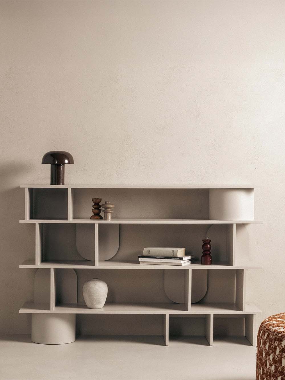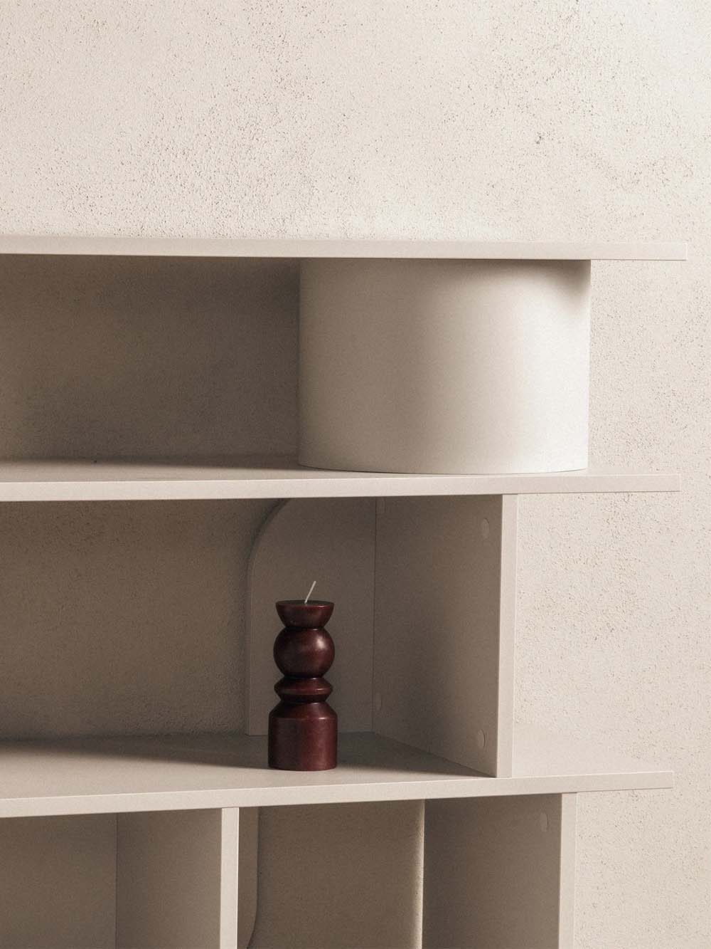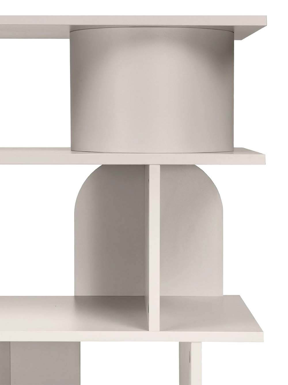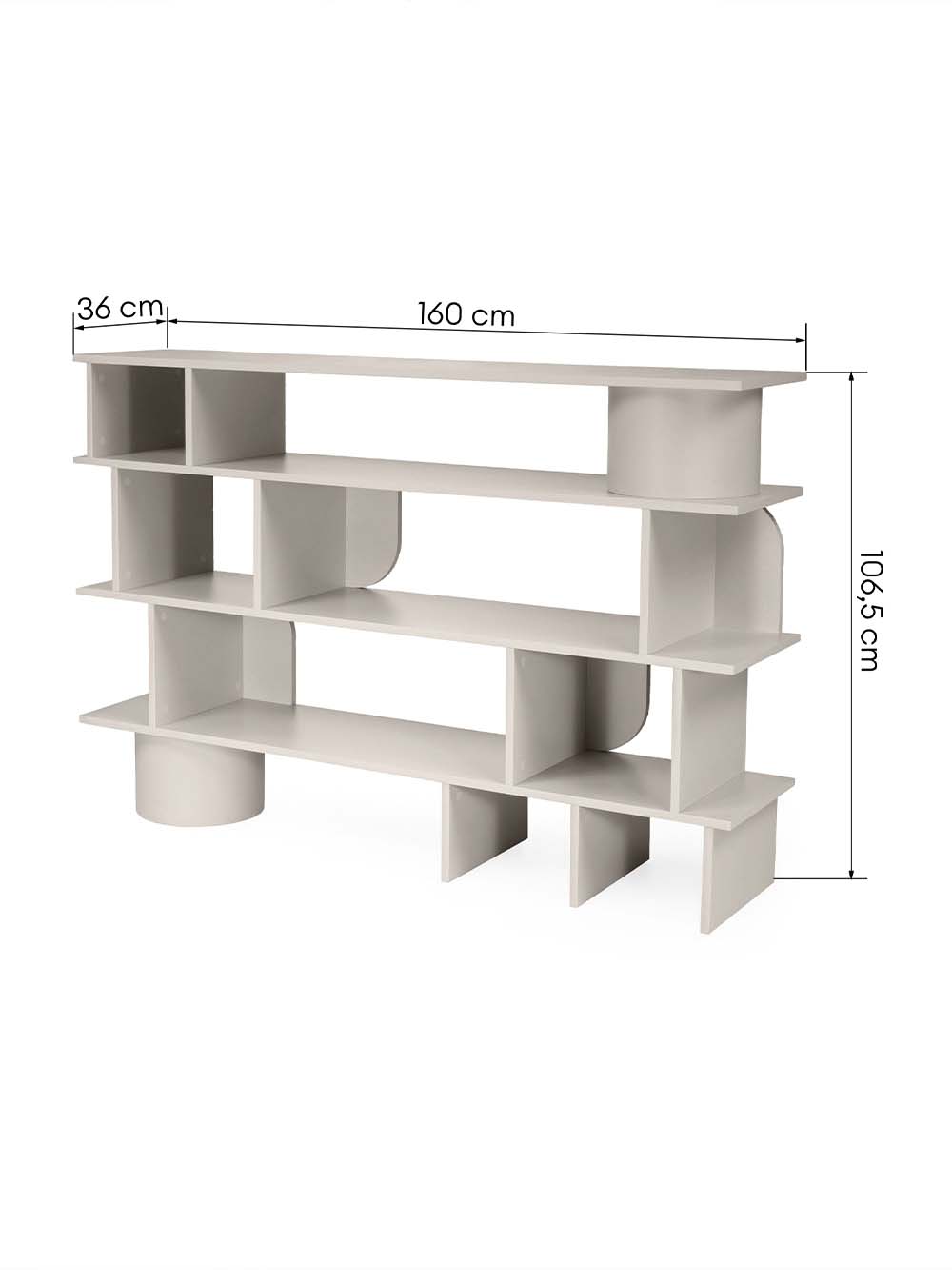 Lentyna Verina – išskirtinio dizaino baldas, kuriame dekoratyvinės arkos ir subtilūs metaliniai vamzdžiai kuria lengvą, architektūrišką siluetą. Kašmyro spalva suteikia interjerui šilumos ir jaukumo. Atviros, skirtingų dydžių lentynos leidžia patogiai eksponuoti dekoracijas, knygas ar kasdienius daiktus, išlaikant tvarkingą ir estetišką vaizdą. Puikiai tinka moderniam interjerui – svetainei, darbo kambariui ar prieškambariui.